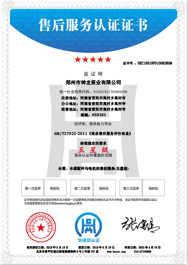 祝贺乐动平台获得水泵、水泵配件与电机的五星级售后服务认证。